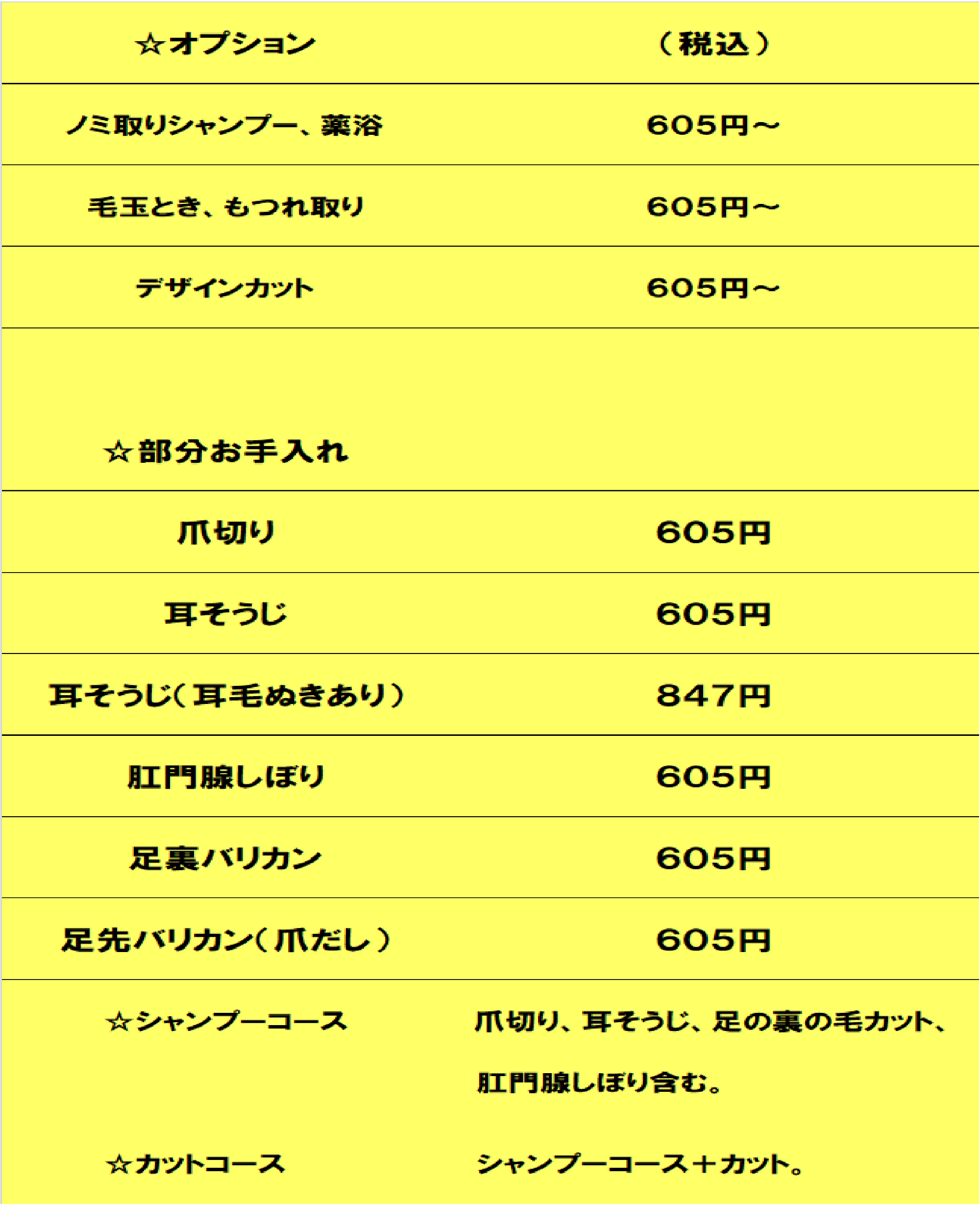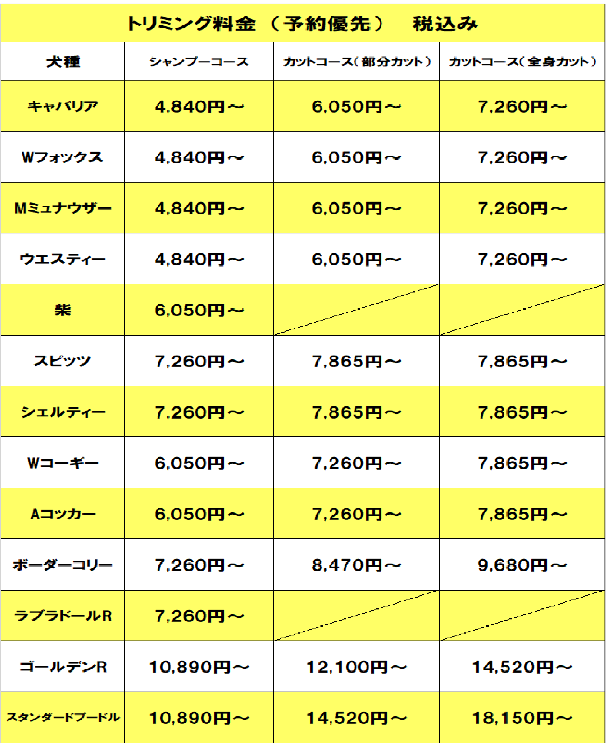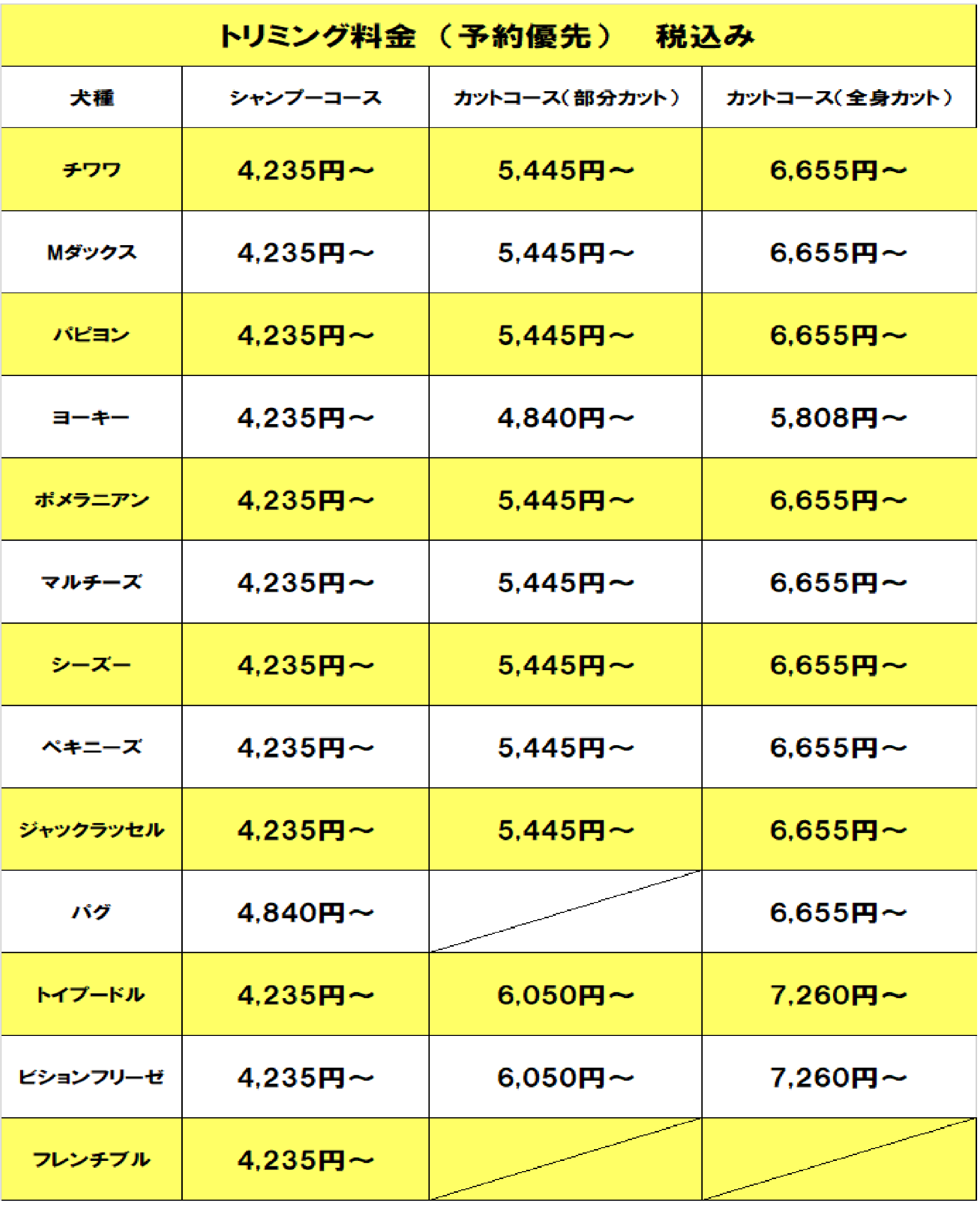 トリミング料金